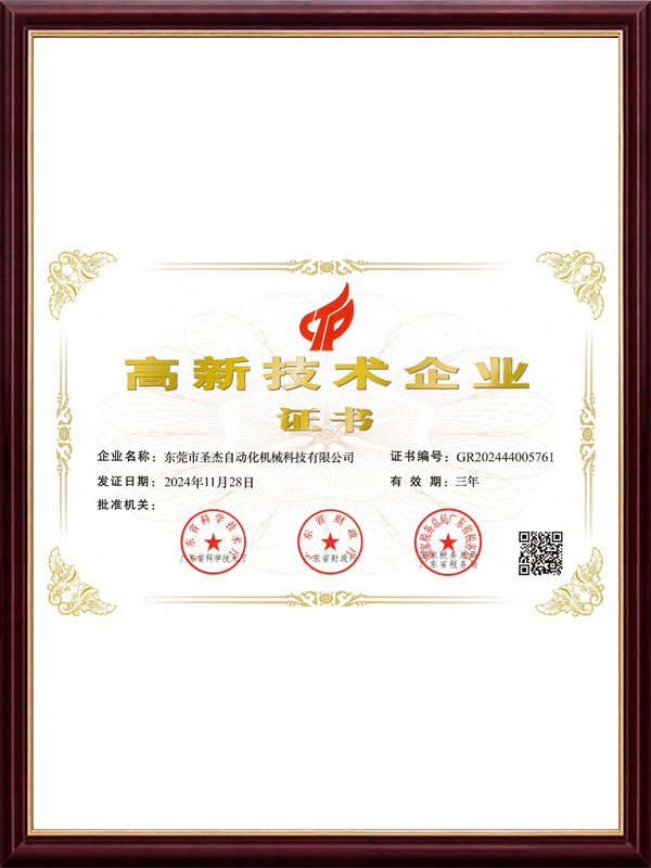 東莞市圣杰自動化機械科技有限公司成立于2010年,座落于電子名鎮——廣東省東 莞市石碣鎮,注冊資金800萬,擁有多項發(fā)明專利,實用新型專利,并通過了 ISO9001質量管理體系認證,經過多年的發(fā)展與技術沉淀,公司已發(fā)展成為一家專 業從事非標自動化設備研發(fā)、生產、銷售為一體的高新技術型企業,并在行業具有 一定的知名度。 圣杰擁有一支高素質、高效率且多年從事非標自動化設備研發(fā)與生產的工程技術團 隊,為客戶提供工程設計、制造安裝、現場調試、技術培訓等全方位的自動化設備 解決方案。主要涉及行業有:電子連接器行業,建筑五金行業,儀表行業,汽車配 件行業等。